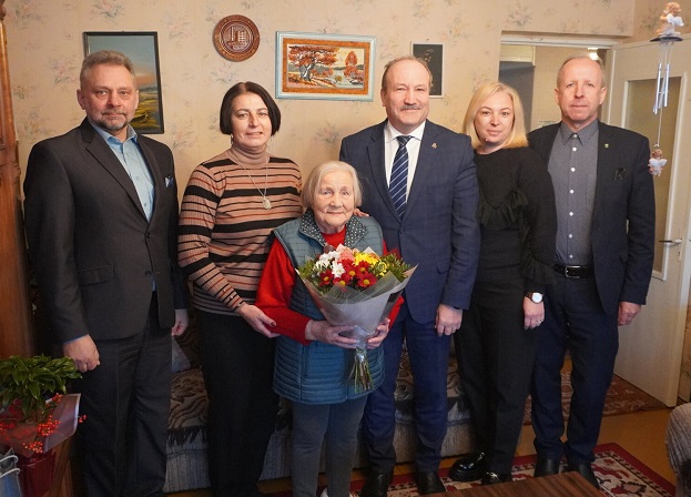 Šilutės rajono savivaldybės meras Vytautas Laurinaitis, Socialinės paramos skyriaus vedėjas Alvidas Šimelionis, Šilutės seniūnas Raimondas Steponkus bei socialinio darbo organizatorė Oksana Kalitina gruodžio 19 d. pasveikino šilutiškę Zinaidą Dumšienę 90-ojo jubiliejaus proga.