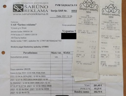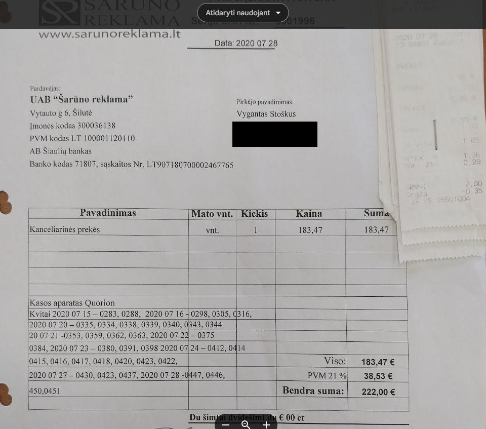 Ar tarybos narys Stoškus taip pirko “prekes”, ar tiesiog susitarė su “Šarūno reklama”, kad jam tieks fiktyvius kitų žmonių čekius?