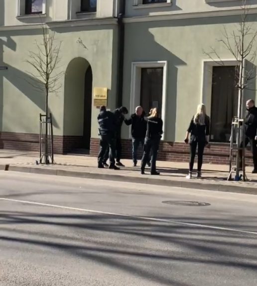 Papildyta: Socialiniame tinkle pasidalinti ir du vaizdo įrašai. Viename užfiksuota kaip vyriškis daužo policijos komisariato langus, kitame – kaip jis sulaikomas.