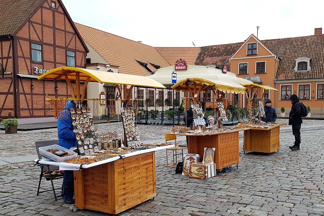 Jau iš tolo girdėjosi muzika, šurmuliavo prekybininkai ir miestelėnai bei miesto svečiai. Didelių spūsčių niekur nebuvo, tad visur galima buvo ramiai pasivaikščioti, paragauti siūlomų maisto produktų ir įsigyti dešrų, skilandžių, įvairių lietuviškų ir latviškų sūrių, latviškų saldainių „Karvutė“, kalėdinių imbierinių sausainių, gražiai supakuotų mažose dėžutėse. Prekybininkai siūlė kvepiančių žvakių, mezginių ir siuvinių, sausų gėlių puokščių, medžio ir molio dirbinių. Sunku buvo išsirinkti.