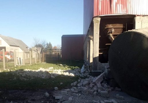 Per pietus Grabupių kaime esančiame kiaulių komplekse nugriaudėjęs sprogimas išdaužė pastato langus, išvertė duris, dalį sienos, išstūmė į lauką didžiulę cisterną.
