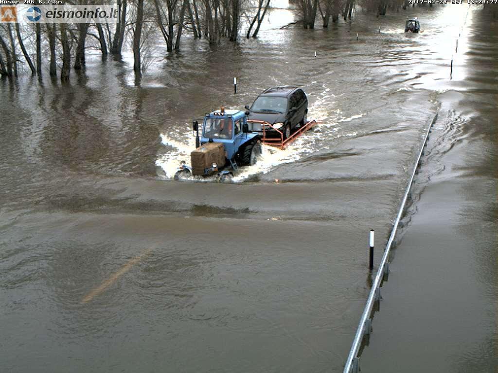 Vandens gylis krašto kelio Nr. 206 Šilutė–Rusnė apsemtame ruože, kurio ilgis 410 metrų (nuo 6,310 iki 6,720 km), nuslūgo iki 25 cm. Lengvųjų transporto priemonių eismas draudžiamas. VĮ „Klaipėdos regiono keliai“ specialiomis transporto priemonėmis apsemtu ruožu kelia lengvuosius automobilius, gyventojus bei keleivius.