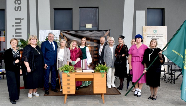 Pasipuošusios retro stiliaus aprangos detalėmis ir elegantiškais aksesuarais, bibliotekininkės linksmai mojavo praeiviams bei kvietė užsukti į lauko erdvėje įrengtą Pagėgių biblioteką, kur laukė įdomūs atradimai ir gera nuotaika. Visiems apsilankiusiesiems įteiktos simbolinės atminimo dovanėlės – originalūs ekologiški knygų skirtukai, graviruoti mąstytojo, švietėjo Vydūno mintimis, dedikuotomis tėvynei. Linksmas klegesys skambėjo, juokas aidėjo, plačios šypsenos veiduose spindėjo ir visiems įsiamžinti su istorijos skraiste apsigaubusiomis bibliotekininkėmis magėjo… Šį spalvingą kvietimą pasinerti į kultūros ir istorijos pasaulį priėmė bei istoriniais motyvais dekoruotame bibliotekos kiemelyje apsilankė gausus būrys mažų ir didelių Pagėgių miesto šventės dalyvių bei svečių.