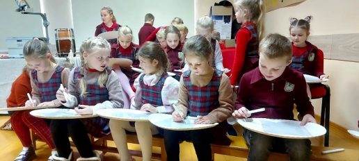 Vėliau vaikai dalyvavo kūrybinėse dirbtuvėse. Dalyviai buvo kviečiami nupiešti spektaklio paliktus įspūdžius. Vaikams buvo išdalinamos didelės popierinės lėkštės, o ant jų – po skaidrę, ant kurios flomasteriais reikėjo piešti spektaklyje labiausiai įsiminusį įvykį ar istorinę asmenybę. Nupiešę ir užrašę savo vardą, skaidres dalyviai atidavė Saulei Degutytei, o išdidinti ekrane jų pačių nupiešti piešiniai, kuriuos patys pristatė, leido pasijusti svarbiais įvykių dalyviais.