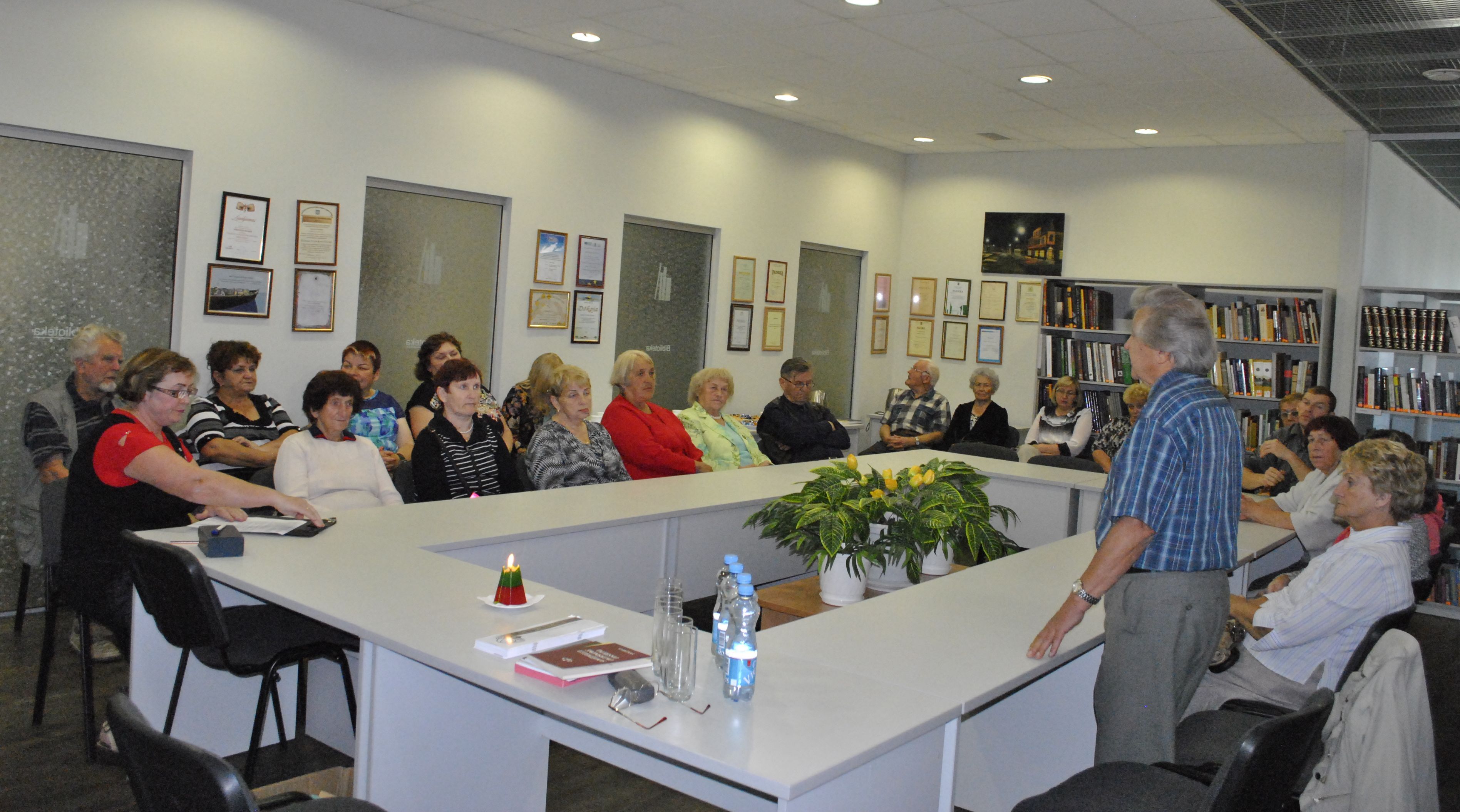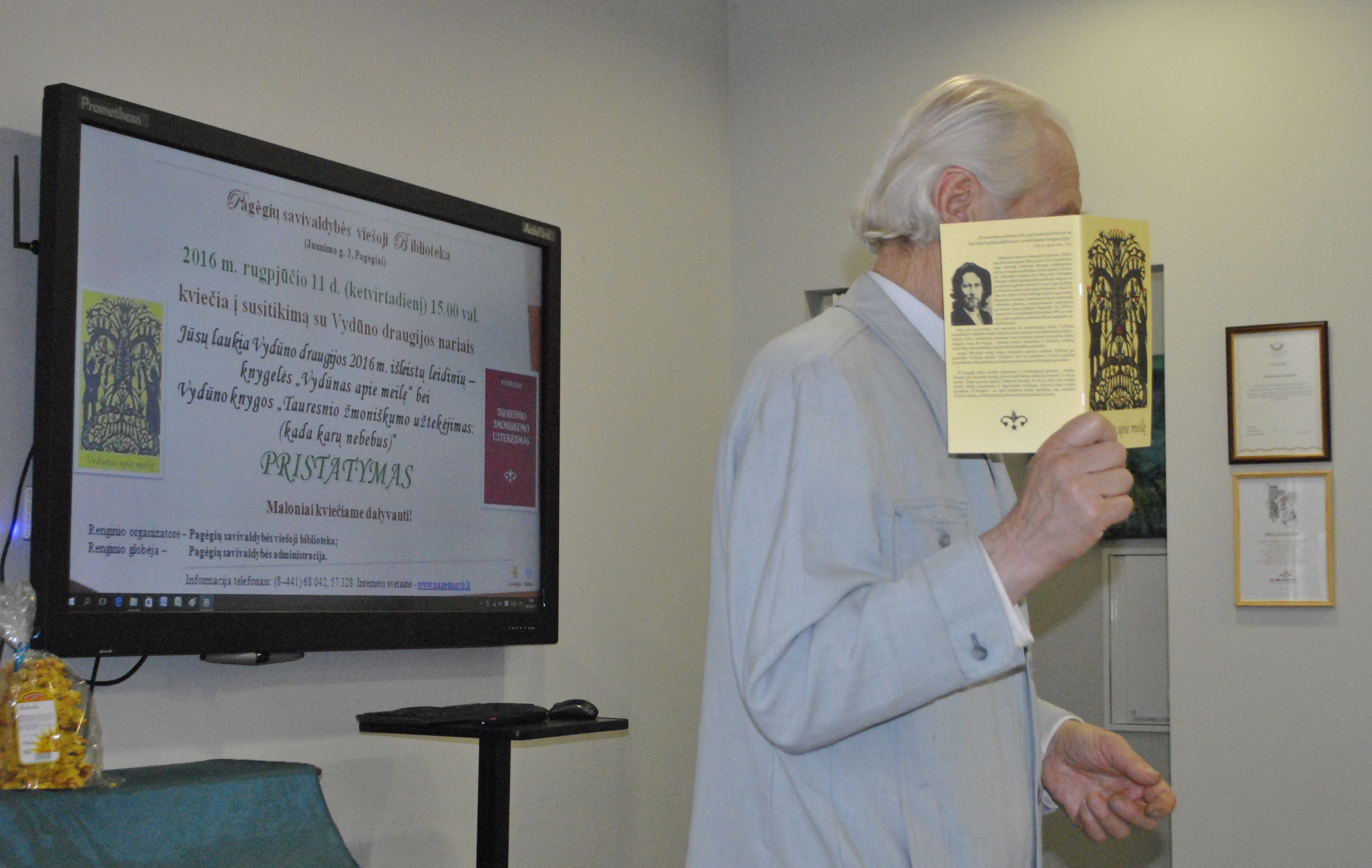 Pagėgių savivaldybės viešoji biblioteka, minėdama Bibliotekų metus, pakvietė literatūrinio ir filosofinio žodžio mylėtojus, krašto istorijos puoselėtojus, sveiko dvasinio bei fizinio gyvenimo būdo propaguotojus į kraštotyrinį – literatūrinį susitikimą su Mažosios Lietuvos dainiaus, kultūros bei raštijos veikėjo, filosofo, muziko, tautos žadintojo Vydūno draugijos nariais. Svečius sveikino ir krašto bendruomenės nariams pristatė Pagėgių savivaldybės viešosios bibliotekos direktoriaus pavaduotoja, šiuo metu laikinai einanti direktorės pareigas, Ramutė Vaitkuvienė. Ji pasidžiaugė, jog jau gražia tradicija tapo, kad Vydūno kūrybinio bei idėjinio palikimo atskleidimui skirti renginiai gausiai suburia kraštiečius pasišildyti šio mokslininko ir rašytojo minčių židinyje, jo idėjų šviesoje ir paskatina pasisemti bent dalelę vydūniškosios išminties.