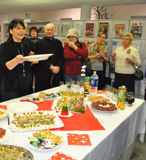 Iškilios parodos „Lietuvių Šveicarija“ atidarymo Pagėgiuose iškilmes vainikavo šilta bendrystės valanda neformalioje aplinkoje, pagėgiškiams apžiūrint Pagėgių savivaldybės viešosios bibliotekos darbuotojų parengtą Jūratės Jablonskytės-Caspersen gyvenimą, veiklą ir gražius ryšius su Pagėgių krašto bibliotekomis atspindinčią literatūrinę parodą bei skanaujant viešnios renginio dalyviams ir svečiams dovanotas šveicariškas vaišes.