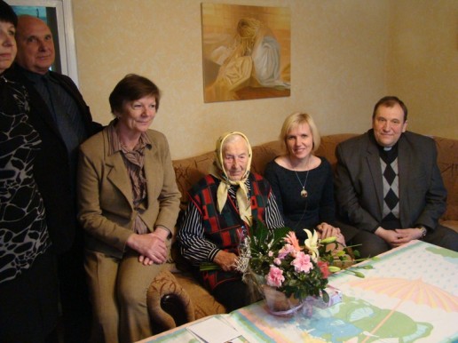 Merė, sveikindama senolę, dėkojo už tokį žavų ilgaamžiškumo pavyzdį, na, o seniūnas T. Balčytis, spėjo, kad turbūt tokio ilgaamžiškumo paslaptis būsianti visada gera Adelės nuotaika, nuo veido nedingstanti šypsena ir kantrybė. Sukaktuvininkė buvo savamokslė siuvėja, siuvo ne tik savo šeimai, bet ir visam kaimui, buvo gerbiama ir mylima. Linkėdamas šviesos ir Dievo palaimos, klebonas močiutei įteikė dideliu šriftu parašytą bibliją, palinkėjo šio įstabaus kūrinio pagalba trumpinti greit ateisiančius žiemos vakarus.