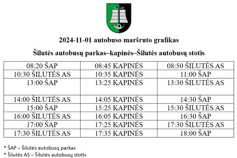 2024 m. lapkričio 1-ąją – Visų Šventųjų dieną – papildomas autobusas kursuos į Šilutės kapines ir iš jų.