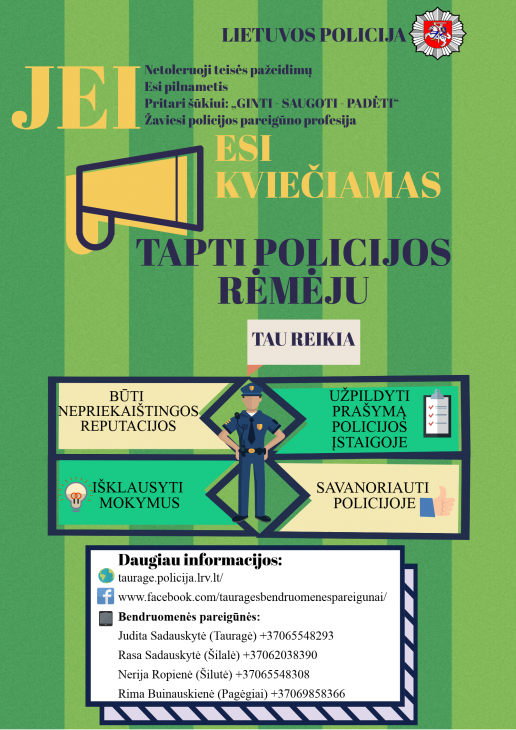 Visi norintys tapti policijos rėmėjais dėl išsamesnės informacijos kreipkitės į: