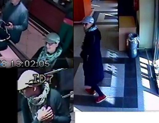 Moters požymiai: tamsaus gymio, apie 30 metų amžiaus, juodų plaukų, su savimi turėjo juodos spalvos rankinę, buvo apsirengusi melsvai žalios spalvos pusilgiu paltu, pilkos spalvos kepure su snapeliu, ant kaklo buvo užsidėjusi spalvotą šaliką, su akiniais, mūvėjo raudonos spalvos sportinius batelius.