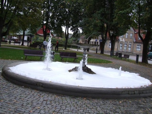 Šilutės miesto skverelyje, esančiame tarp Tilžės-Dirvų ir Tilžės-Vydūno gatvių sankryžų, esantis fontanas rugpjūčio 8-os rytą vėl buvo “papuoštas” putomis.