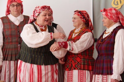Pristačius tautinį kostiumą Degučių kaimo folkloro kolektyvas „Pilutė“ atliko keletą liaudies dainų.