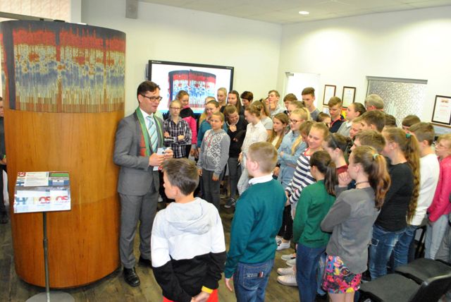 - (Viduryje iš kairės): instaliacijos kūrėjo Juliaus Žėko ir Pagėgių savivaldybės mero Virginijaus Komskio nuotrauka atminčiai su jaunaisiais instaliacijos „Tautiška giesmė“ pristatymo dalyviais – moksleiviais.