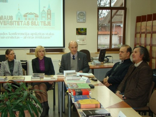 Šilutės F. Bajoraičio viešojoje bibliotekoje vyko spaudos konferencija prie apskrito stalo „Universitetas atviras iššūkiams“. Tai jau aštuntą kartą Šilutės F. Bajoraičio viešosios bibliotekos organizuotų Vilniaus universiteto dienų mūsų mieste baigiamoji dalis. Susitikime su Universiteto profesoriais, docentais dalyvavo gimnazijų ir kitų ugdymo įstaigų vadovai bei Šilutės r. savivaldybės merė Daiva Žebelienė.