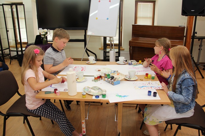 Užsiėmime „Piešianti vasara“ spalvas liejo tėveliai ir vaikai