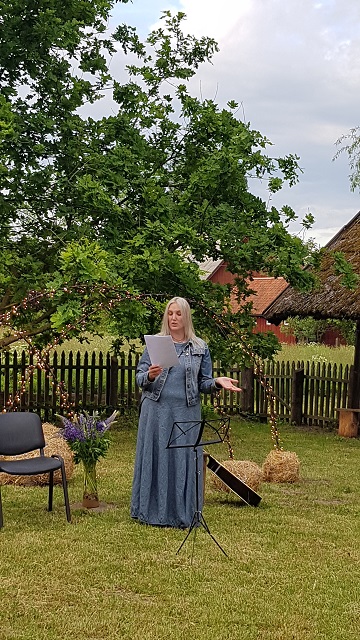 Lubinų žvakės puošė improvizuotą sceną, tarsi žvaigždės mirksėjo fone švieselės,rskambėjo gitaros akordai. Vakaro svečiams ir dalyviams namiškiams buvo įteikti Birutės Servienės, Salos etnokultūros ir informacijos centro vadovės, padėkos raštai. Salos etnokultūros ir informacijos centro kultūrinės veiklos vadybininkė Sonata Verbučianskė kartu su bibliotekininku, projekto bendraautoriumi, Algiu Čėsna, taip pat skaičiusiu poeto eiles, dėkojo visiems susirinkusiems, kvietė pasivaišinti arbata ir pasidalinti įspūdžiais. Vakaras pasibaigė, tačiau mintys ir geri įspūdžiai – tos aukštosios akimirkos – nenorėjo paleisti. Lakštingalų choras lydėjo einant pylimu pagal Pakalnės upę, o besileidžiančios saulės nušviesti laukai prašyte prašėsi būti įamžintais.