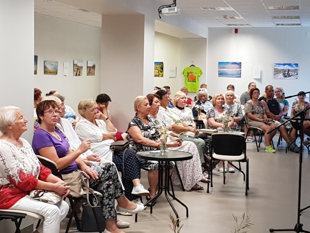 Jau tapo tradicija, kad į bibliotekos organizuojamus renginius, kurių kaltininkai yra pažįstami kūrėjai, šilutiškiai renkasi gana gausiai. Taip buvo ir šį kartą – bibliotekos parodų salė, kurioje ant staliukų puikavosi ramunių žiedų puokštelės ir kompaktinės plokštelės, buvo pilnutėlė. Teko kėdžių daugiau pristatyti. Ekrane keitėsi T.Petravičienės ir B.Morkevičienės fotografijos.