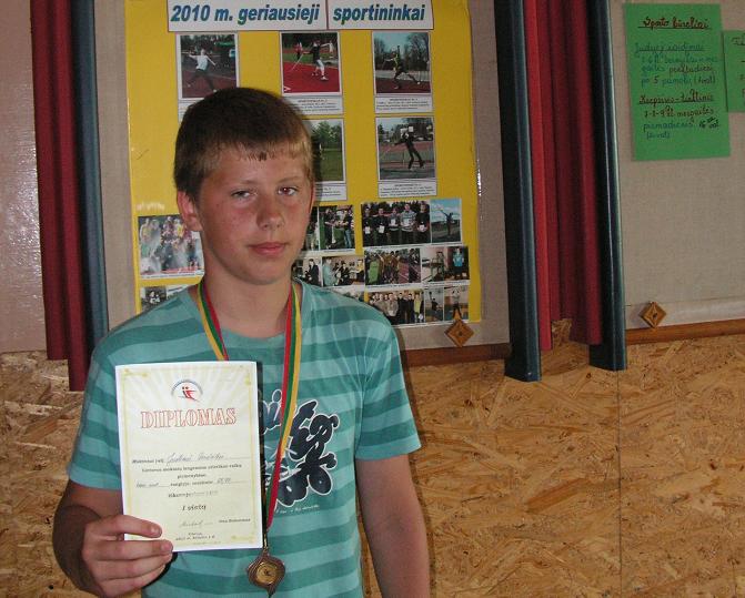 Lietuvos vaikų čempionas Justinas Gerdvilis. Nuotrauka Gintarės Grigaitės, Vilkyčių pagrindinės mokyklos aštuntokės