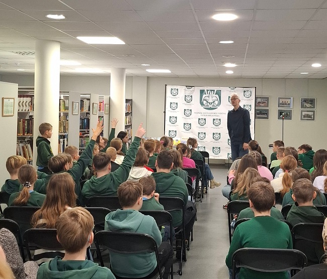 Artėjant Tarptautinei rašytojų dienai, 2025 m. vasario 26 d. susitikti su jaunaisiais skaitytojais į Pagėgių savivaldybės Vydūno viešąją biblioteką atvyko vilnietis rašytojas, teisininkas, publicistas, tinklaraštininkas, mokslo populiarintojas, fantastinės literatūros mėgėjams puikiai pažįstamas Justinas Žilinskas. Į susitikimą su juo susirinko gausus būrys Pagėgių Algimanto Mackaus gimnazijos 4–5 klasių mokinių su mokytojomis: Rolanda Rakauskiene, Loreta Gečiene, Svetlana Musvydiene, mokytojos padėjėja Gintare Volskiene bei bibliotekininke Jovita Kubilinskiene.