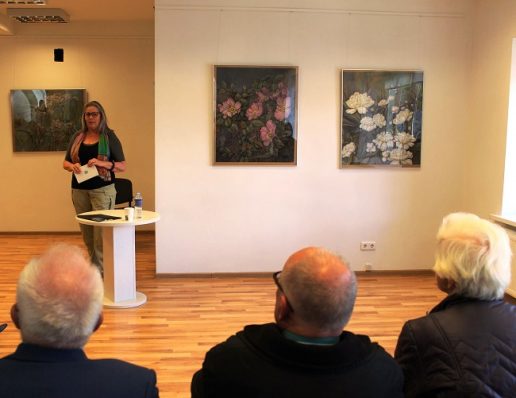 Tautodailininkė Ona Dromantienė pasveikino susirinkusius ir pasidžiaugė gražia bei prasminga miestelio švente. Pastaraisiais metais tapytoja yra perėjusi prie kūrybos pastelės technika. Pristatydama savo sukurtus darbus tapytoja sakė, jog pastelės technika jai yra tapyba ir piešimas vienu metu. Tai leidžia išplėsti estetines raiškos ribas. Tapyboje kūrybiškai tirdama augalijos pasaulį menininkė siekia perteikti pozityvią nuotaiką, šviesią ir švarią energetiką. Anot Onos Dromantienės, ne mes kuriame kūrybą, bet kūryba kuria mus.