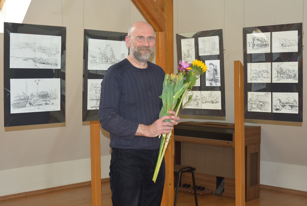 Bibliotekoje – Egidijaus Vidrinsko paroda „Piešiniai iš bloknoto“