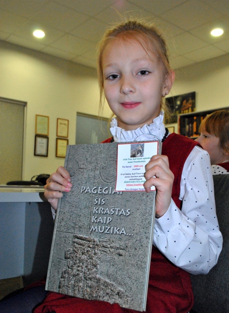 Besibaigiant literatūriniams bei interaktyviems užsiėmimams vaikų laukė maloni staigmena – pirmokė Austėja Valaitytė tapo 2000-ąja edukacinio pasakų kambario ,,Suopio paunksmė“ viešnia. Bibliotekos direktorė Milda Jašinskaitė-Jasevičienė šia proga mergaitei įteikė Pagėgių kraštą reprezentuojantį leidinį „Pagėgiai. Šis kraštas kaip muzika…“.
