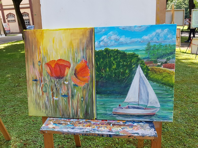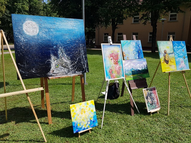 Sekmadienį praeivių akis traukė daugybė paveikslų, išdėliotų ant įvairaus dydžio molbertų, ir kviečiančių užeiti pasižvalgyti į juos. Atėjusieji galėjo dalyvauti kūrybinėse dirbtuvėse – prisidėti tapant bendrą paveikslą.