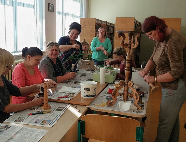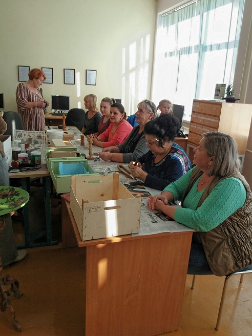 Vėlyvą penktadienio popietę Traksėdžių biblioteka tapo kūrybinėmis dirbtuvėmis. Čia traksėdiškės senus bei naujus daiktus galėjo paversti vienetiniais meno kūrinais. Asociacijos „Traksėdžių viltis“ pirmininkė Eglė Paulauskienė mokė dekupažo paslapčių atskleidimo.