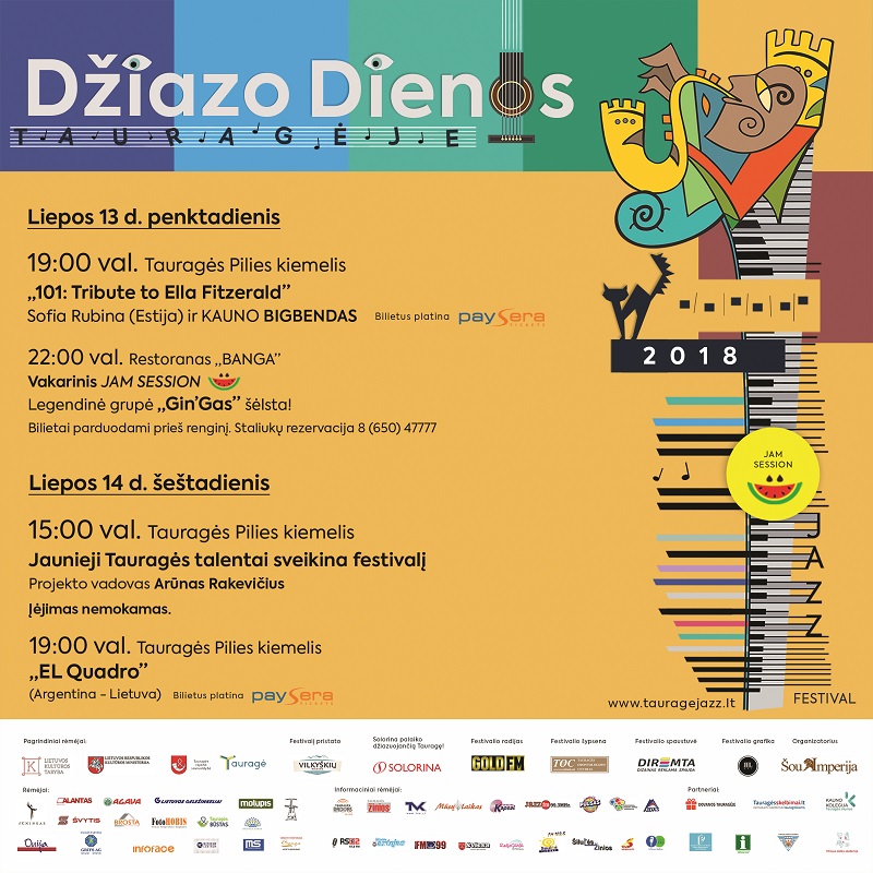 Liepos 13 d. sugrįšime į visų geriausią, išbandytą, patikrintą, patikimą, mylimą, jau džiazo dvasios prisigėrusią ir mielai ją geriančią vietą, į Tauragės pilies kiemelį. Čia regėsime ir klausysime programą, skirtą pirmajai džiazo ledi Ellai Fitzgerald „101:Tribute to Ella Fitzerald“. Klausysime Estijos džiazo žvaigždės Sofia Rubina ir Kauno bigbendo. Liepos 13-oji yra dar ir penktadienis, bet nėra abejonių, kad jis bus sėkmingas ir nuostabus. Koncertas 19 val.
