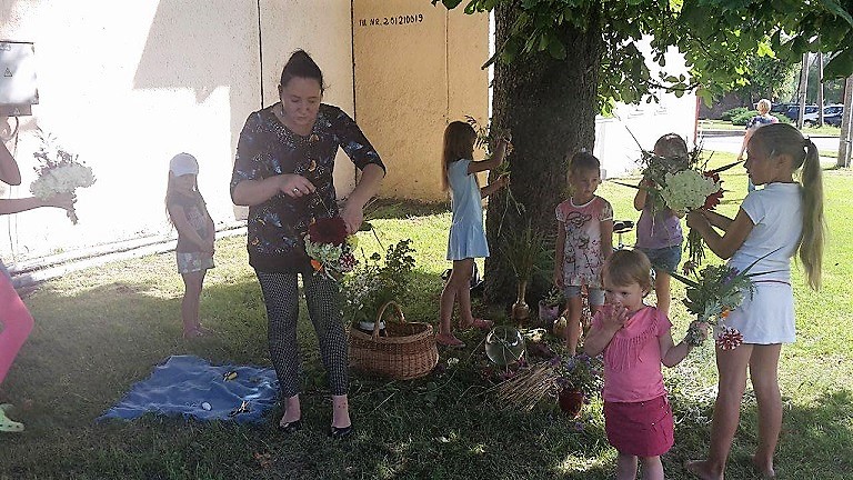 Vaikai vardijo surinktų lauko ir darželio gėlių, žolelių pavadinimus. Tų augalų, kurių pavadinimų nežinojo, drąsiai klausė: Visiems pati smagiausia užsiėmimo dalis buvo savo puokštės kūrimas. Kiekvienas išsirinko patį didžiausią augalą, tai yra pagrindinis kompozicijos akcentas. Aplink jį dėjo javus, tada įvairius žolynus, spalvingas gėles ir kitus žydinčius augalus. Visi džiaugėsi savo sukurtomis puokštėmis.