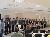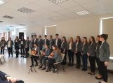 Per visą bibliotekos parodų ir konferencijų salę nusidriekė gimnazistų ansamblio eilė (vadovė Giedrė Pocienė). Tokio dydžio ansamblio biblioteka tikriausiai dar neregėjo. Buvo gera prieš Vasario 16-osios šventę klausytis gimnazistų skaitomų eilių ir dainų, kurios skambėjo jautriai ir iškilmingai, akomponuojant gitaristėms.