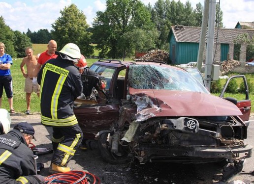 Smūgio būta išties stipraus, deformuotos „VW Passat“ automobilio dalys prispaudė vienam keleivių kojas. Jį vadavo į įvykio vietą atskubėję ugniagesiai gelbėtojai.