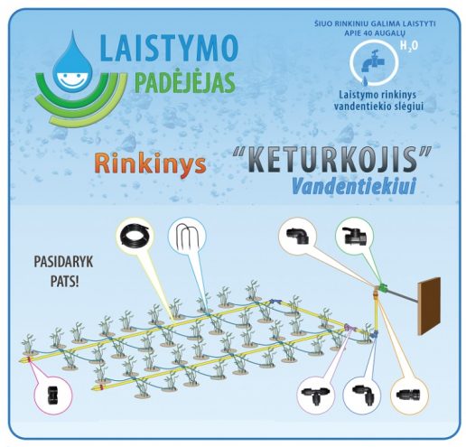 Tai atlikus reikės sumontuoti gravitacinio laistymo sistemą, vadovaujantis pateiktomis instrukcijomis rinkinyje. Jeigu jums tai atrodo sudėtinga, visada galite konsultuotis su pardavėjais ir sulaukti pagalbos.