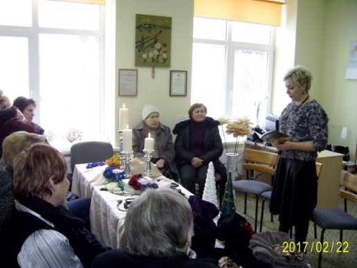 Ant stilingai banguojančios staltiesės širdis džiugino ir šildė ne tik trys degančios žvakės, bet ir puikavosi nuostabūs moteriški aksesuarai: vėriniai, apyrankės, kepuraitės. Galėjome ne tik tuo pasidžiaugti, bet ir įsigyti, o be to buvome pamokytos, kaip šias grožybes pasigaminti pačioms. Moteris spinduliavo didžiule meile ir dėmesiu kiekvienai klausytojai, dalijo patarimus,pamokymus.