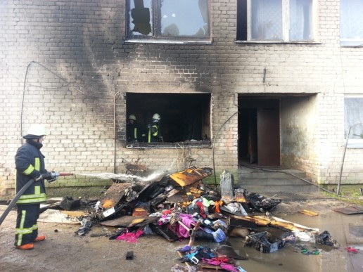 Paaiškėjo, kad dėl kol kas nežinomų priežasčių užsiliepsnojo vienas iš pirmojo aukšto butų nediliame kaimiškame daugiabutyje. Buto šeimininkė tuo metu buvo viduje su dviem mažamečiais vaikais.