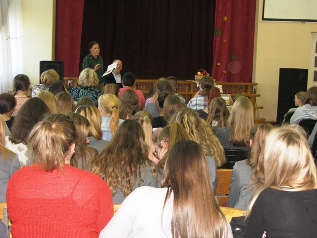 Kas trejus metus vykstanti Šilutės F. Bajoraičio viešosios bibliotekos literatūrinio rudens šventės – konkurso „Prisijaukinkim žodį, paukštį, debesį…“ dalyviai – poetė, dailininkė Giedre Bulotaite – Jurkūniene ir rašytojas Vladas Stūrys atvyko į Žemaičių Naumiestį ir susitiko su gimnazistais bei mažaisiais bibliotekos skaitytojais.