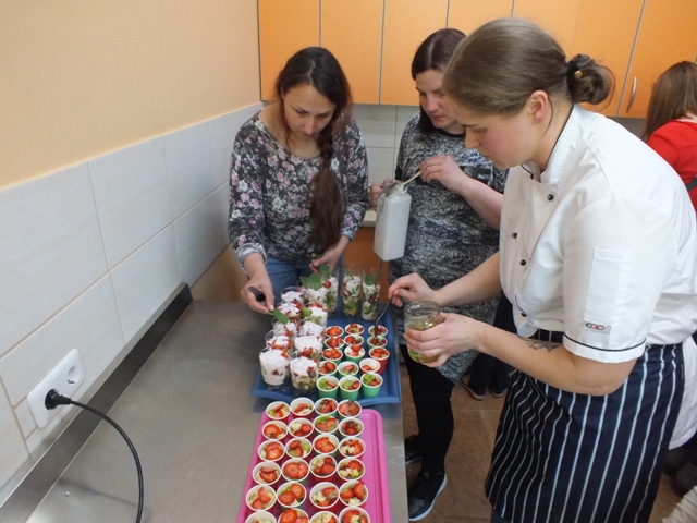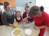 Daugiausia mamų ir močiučių susirinko išmokti skanėstų gaminimo paslapčių, kurias atskleisti galės jau šį sekmadienį, kai sukvies savo šeimas prie šventinio stalo. ,,Desertų gamybos“ klasėje 1 klasės mokinio mama A. Barkauskienė mokė pasigaminti vaisių salotas su ypatingu padažu. ,,Konditerijos paslapčių“ klasėje mama M. Čėsnienė su dalyvėmis gamino prancūzišką desertą, o mama V. Vasiliauskienė mokė konditerijos dekoravimo gudrybių – kaip gražiai ir išmoningai papuošti keksiukus.