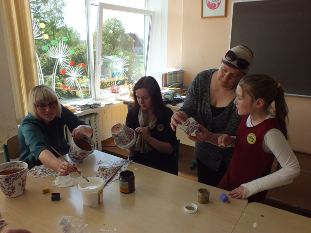 ,,Rankdarbių ir karpinių“ klasėje (vad. B. Verbuvienė) mamytės su dukromis mokėsi pasigaminti linines gėles, kuriomis galima papuošti ne tik stalą, bet ir suknelę ar rankinę.