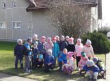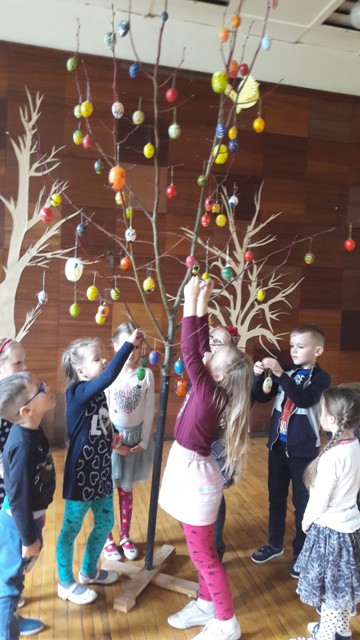 Antradienį mažieji juknaitiškiai pasinėrė į spalvų ir šokio pasaulį. Auklėtoja Regina Bukauskienė suruošė vaikų piešinių parodėlę „Linksmosios rankelės“, po kurios visi išskubėjo į lauką „žadinti“ pavasario. Čia vaikai puošė darželio teritorijoje augantį krūmą margučiais, kuriuos visą savaitę, kartu su tėveliais namuose ir grupėje su auklėtojomis, margino įvairiais raštais. Rekordo nesiekėme, svarbios buvo vaikų emocijos ir bendruomeniškumas puošiant įstaigos aplinką.Po pietų miegelio visus vaikus ir atvykusius tėvelius džiugino šokių studijos pamokėlė „Šokio ritmu“(vadovė J.Aukštuolytė).