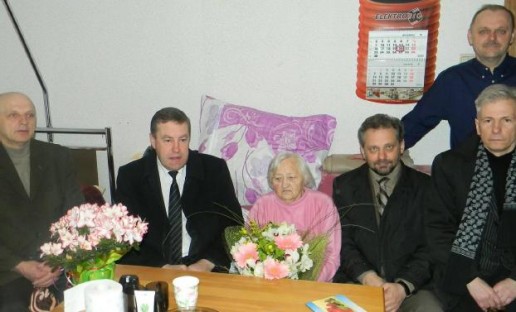Jubiliatę sveikinęs Meras ir Socialinės paramos skyriaus vedėjas linkėjo geros sveikatos ir sulaukti 100 metų jubiliejaus.