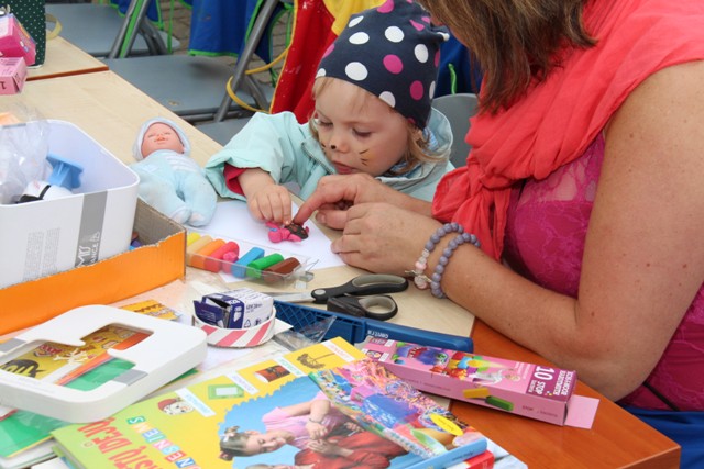 Vasaros kiemelyje renginio dalyviai žaidė gigantiškų šaškių, šachmatų ir domino žaidimus, darbavosi kūrybinėse dirbtuvėlėse, kuriose kūrė įvairius darbelius iš modelino, popieriaus, panaudodami modernius instrumentus. Dirbtuvėlėse vaikai susipažino su įvairiomis knygomis, kuriose aprašyta, kaip susikurti identišką arba savo sugalvotą darbelį. Vaikai mokėsi dirbti draugaudami, bendraudami, įtraukdami į kūrybą ir tėvelius.