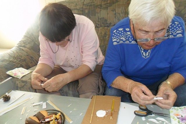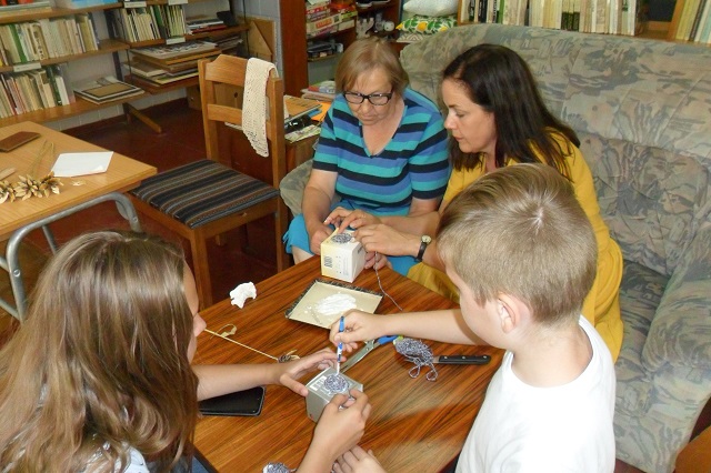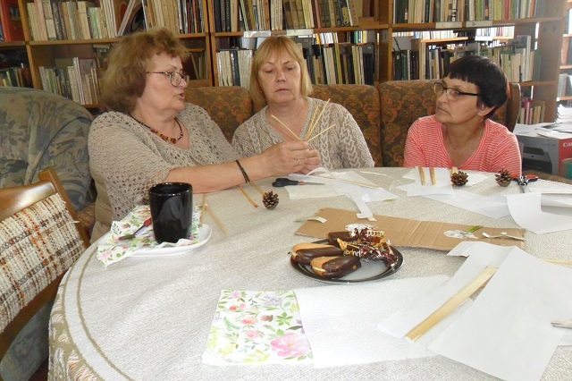 Popietės dalyviai mokėsi, kaip dailiai papuošti, pasigaminti suvenyrų dėžutes. Prisipildę įspūdžių ir minčių skrynelę, sustoję bendrai prisiminimo nuotraukai, visi šiltai ir nuoširdžiai p. Vidai palinkėjo sveikatos, naujų kūrybinių minčių bei surengti dar ne vieną autorinę parodą Piktupėnų bibliotekoje.