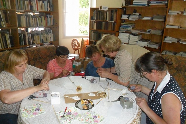 Pedagogė, tautodailininkė Vida Gečienė, atsidėkodama už šiltą susitikimą, bibliotekai padovanojo ilgiausią ir meniškiausią knygų skirtuką bei simbolinę rugių puokštę, kuri puoš biblioteką iki naujo derliaus, iki naujos rankdarbių parodos.