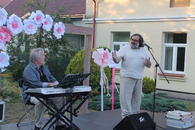 Švėkšnos „Dvaro šventė“ prasidėjo įžanginių poezijos ir muzikos vakaru „Gėlė ir vėjas“, kurį jau 4 metus iš eilės organizuoja Tradicinių amatų centras Švėkšnoje. Penktadienio vakaras lepino visus susirinkusius ne tik saulėtu dangumi, bet ir vėju, kuris puikiai atgaivino po dienos karčių. Jaukus vakaras prasidėjo nuo dviejų parodų pristatymo – Daugpilio muziejininkų surengtos parodos „Pliaterių dvarai Latvijoje“, kurią iš Latvijos į Lietuvą atviliojo V. Astrauskienė ir V. Ališauskaitės-Norkuvienės fotografijų paroda „Šimtmetį menantys vingiai“, kurioje autorė senolių portretais perteikė jų kasdienybės šviesą, vienatvę, džiugesį ir laimę, taip paminėdama Lietuvos šimtmetį. Fotografijos paliko didelį įspūdį kiekvienam atvykusiam į renginį. Po parodų pristatymo, Tradicinių amatų centro kiemelį užliejo nuostabaus aktoriaus, režisieriaus ir labai šilto žmogaus – Sigučio Jačėno skaitomos eilės, jam improvizuotai akomponavo bei džiazo ritmu foną sudarė vienas žymiausių Lietuvos džiazo pianistų Saulius Šiaučiulis. Šis nuostabus duetas visos programos metu šiltai bendravo su žiūrovais, stebino programos įvairumu ir netikėtomis improvizacijomis.