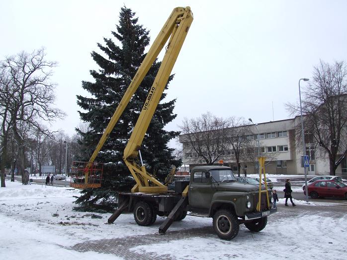 Šiandien 13 metrų aukščio žaliaskarė jau pradėta puošti. Kalėdiniai akcentai montuojami ir Šilutės pagrindinėse gatvėse.