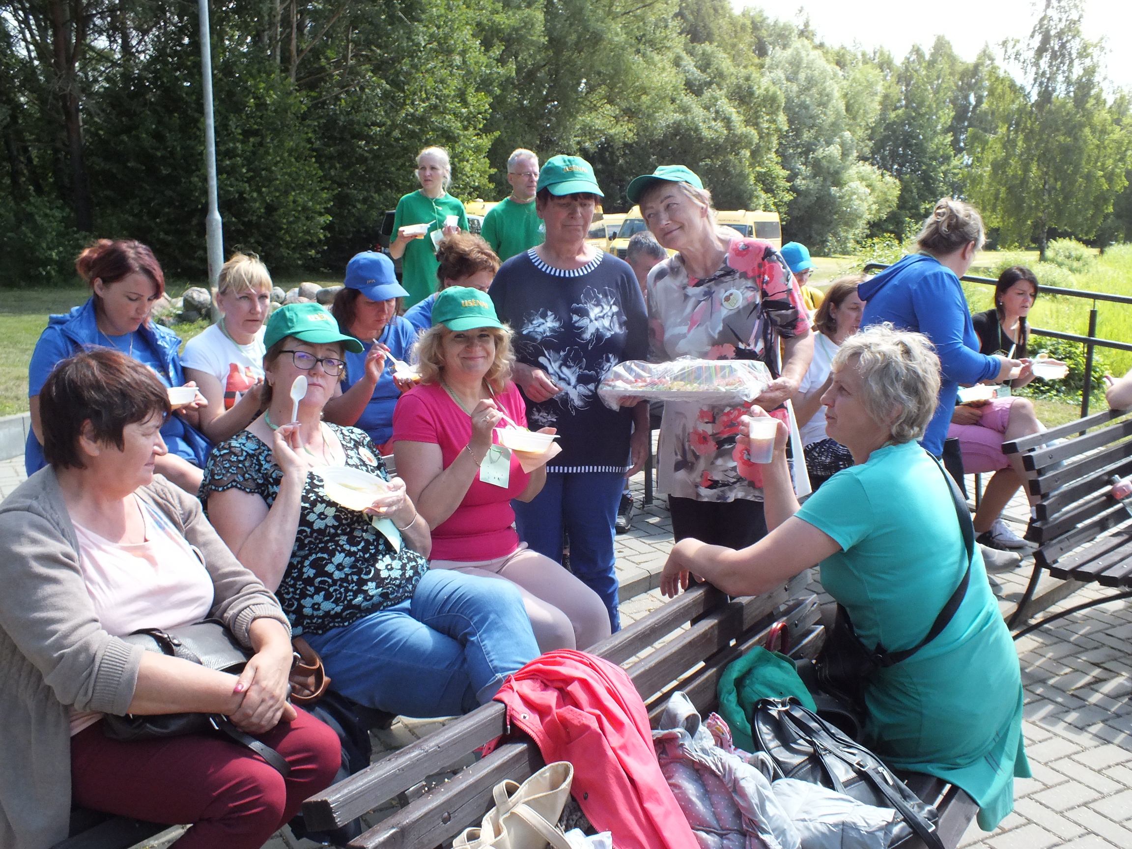 Po gerų poros valandų, sėkmingai įveikę visus išbandymus, spartakiados dalyviai sugrįžo į vasaros estradą, kur jų laukė sotūs pietūs – kareiviška košė, už kurią organizatoriai dėkoja Valstybės sienos apsaugos tarnybos Pagėgių rinktinės Vileikių užkardos atstovams.