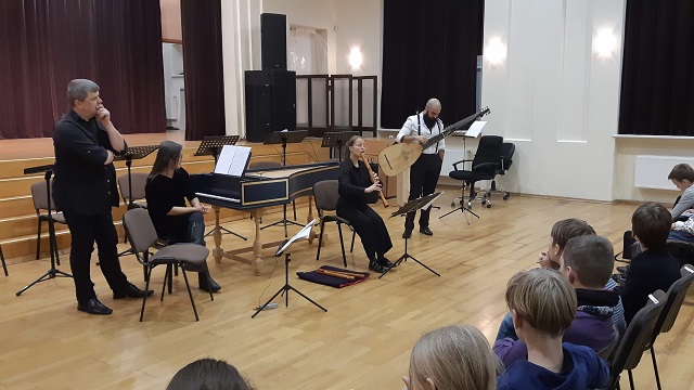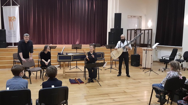 Prieš koncertą „Morgaine“ muzikantai, kurį sudaro senaisiais muzikos instrumentais grojanti tarptautinė komanda, surengė pamoką Šilutės meno mokyklos mokiniams. Mirjam – Luise Münzel iš Vokietijos papasakojo išilginės fleitos istoriją bei kalbėjo apie jos naudojimą. Alina Rotaru, taip pat iš Vokietijos, papasakojo apie klavesiną bei pademonstravo jo galimybes. Brazilas Fernando Olivas, gyvenantis Vokietijoje, pristatė įspūdingą ir daugeliui nematytą styginį instrumentą teorbą. Vienintelis lietuvis šiame ansamblyje Darius Stabinskas papasakojo apie į nemažą smuiką panašų senąjį instrumentą viola da gamba. Muzikos besimokantiems mokiniams tokia pažintis buvo labai naudinga ir įdomi. Intrigos teikė ir tai, kad svečiai apie savo instrumentus, visų mokinių sutikimu, pasakojo angliškai. Ir tai nesukėlė jiems jokių sunkumų bendraujant su šiais muzikantais.