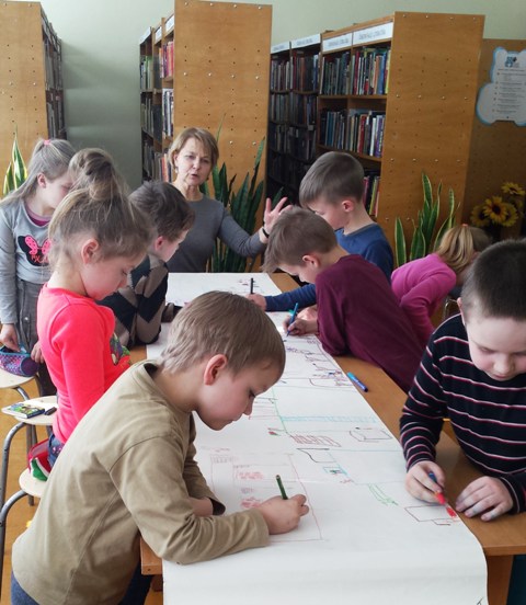 Saulėtą kovo 16 d. popietę Šilutės Martyno Jankaus pagrindinės mokyklos Traksėdžių progimnazijos skyriaus pirmokėliai dalyvavo Šilutės F. Bajoraičio viešosios bibliotekos Traksėdžių filiale vykusiame savęs pažinimo ir saviraiškos kūrybiniame užsiėmime „Karalystė“. Užsiėmimą vedė Lietuvos meno terapijos asociacijos narė Irena Rimkuvienė, jau tris dešimtmečius dirbanti Saugų vaikų darželyje. Pedagogė jau keletą metų gilinasi į psichologijos subtilybes, domisi dailės, pasakų, keramikos, tekstų rašymo terapija, dalyvauja seminaruose, pati veda užsiėmimus, o įgytas žinias bando taikyti praktikoje. Kūrybinio užsiėmimo „Karalystė“ tikslas – suprasti tarpusavio santykius su kitais, atskleisti vidinius resursus ir mėgautis pačiu piešimu. I.Rimkuvienė sako, jog vaiko piešinys gali daug ką pasakyti, o piešimas – tai nuostabiausias būdas bendrauti su vaiku. Tik šis piešimas buvo kitoks, vaikai piešė negalvodami, ar gerai nupiešta, ar patiko kitiems. Jie tiesiog piešė ant didžiulio bendro lapo ir mėgavosi tuo, ką daro. Kurdamas vaikas išlaisvina susikaupusią įtampą, išsprendžia vidinius konfliktus, išreiškia jausmus.