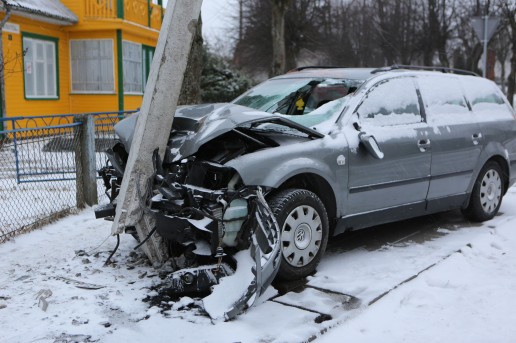 Žvarbų penktadienio rytą, kai dauguma skubėjo į darbus Žemaičių Naumiestyje, Klaipėdos g. įvyko skaudi nelaimė, per kurią vienas vyriškis žuvo, automobilio „VW Passat“ vairuotojas ir keleivis sužeisti.
