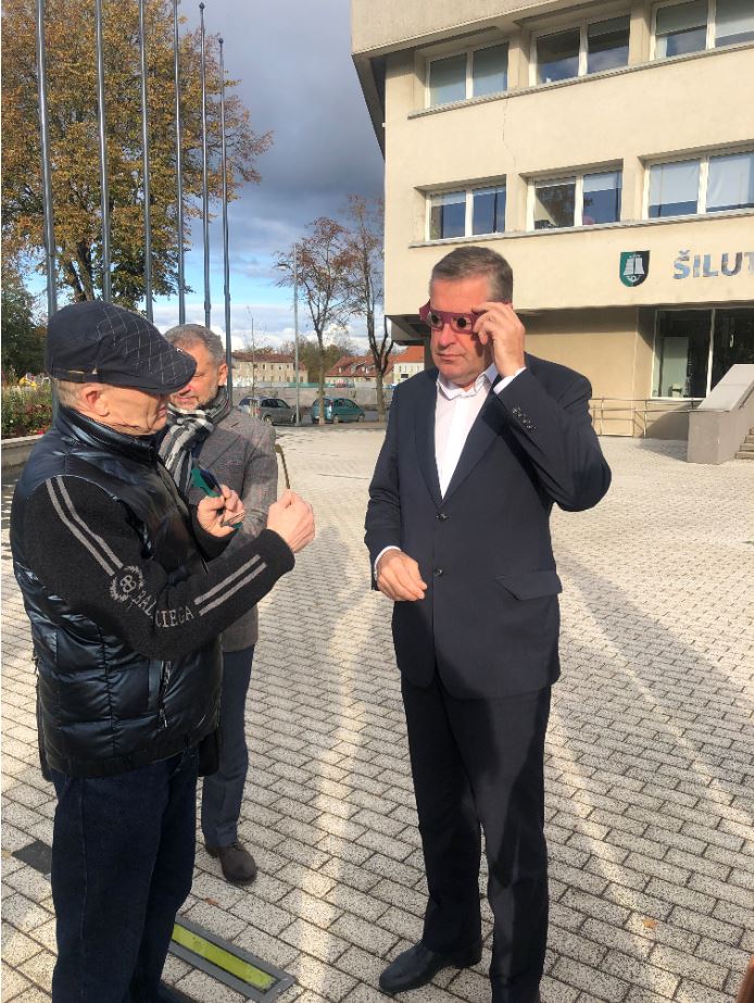 Šilutės rajono savivaldybės meras Vytautas Laurinaitis, mero pavaduotojas Sigitas Šeputis, Administracijos direktorius Virgilijus Pozingis, Administracijos direktoriaus pavaduotoja Daiva Žebelienė, Socialinės paramos bei Ūkio skyriaus specialistai spalio 14 d. dalyvavo susitikime su Lietuvos aklųjų ir silpnaregių sąjungos Šilutės skyriaus atstovais, kurie pakvietė Savivaldybės vadovus išbandyti įvairius regėjimo sutrikimus atspindinčius akinius.